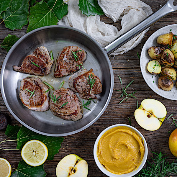 É uma panela ideal para preparar todo o tipo de receitas, seja no fogão ou no forno, por mais elaboradas que sejam. Graças ao seu rápido tempo de aquecimento, os alimentos ficam perfeitamente selados. É fantástica para selar carne ou frango no fogão e finalizar no forno, acompanhada de batatas em gomos, tomates cereja ou courgettes fatiadas temperadas como preferir. É perfeita para cozinhar com eficiência as suas refeições mais completas, combinando os seus diferentes tamanhos. Nas mais pequenas pode preparar molhos ou fazer ovos estrelados, enquanto nas maiores pode selar carnes, cozinhar peixe ou peito de frango grelhado, bifes de picanha panados ou fritar batatas como acompanhamento. São ideais para saltear legumes e ovos mexidos com cogumelos, bem como para fazer ratatouille, molho bolonhesa, qualquer massa à carbonara ou para cozinhar molho bechamel para croquetes. As panelas mais pequenas têm o tamanho e a altura perfeitos para que possa fritar croquetes, empanadas, bolinhos fritos ou donuts de forma ideal, rápida e mantendo a temperatura do óleo. Pode cozinhar tomates provençais no fogão e gratiná-los na mesma panela. Prepare maçãs ou peras assadas, selando-as com um pouco de manteiga e canela, e leve o tacho ao forno para assar uma sobremesa deliciosa em pouco tempo. Em todos os seus tamanhos, cozinhar com elas torna-se uma experiência agradável e muito gratificante.