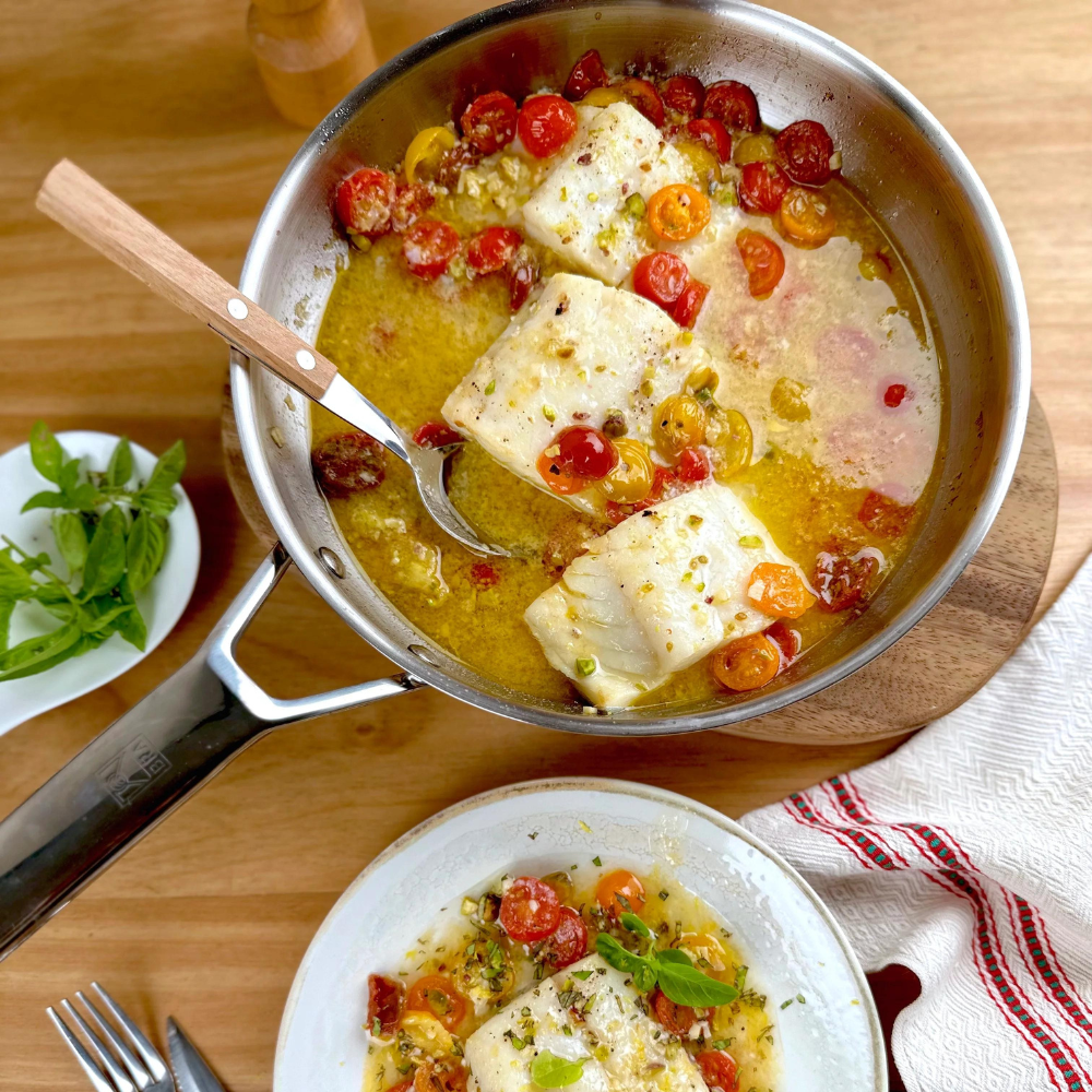 Es una sartén que manejarás con comodidad y con la que podrás preparar todo tipo de recetas, tanto en el fuego como en el horno. Al calentarse rápidamente, los alimentos quedan sellados a la perfección. Es fantástica para saltear verduras o para marcar la carne y acabar de asarla en el horno, acompañada de unas patatas cortadas en gajos o unas flores de brócoli espolvoreadas con queso parmesano. Te ayudará a cocinar con gran eficiencia tus menús más completos, combinando sus diferentes tamaños. Puedes preparar salsas o hacer huevos fritos en las más pequeñas, al tiempo que en las de mayor diámetro cocinas el pescado o una pechuga de pollo a la plancha, o fríes unos filetes de lomo empanados o unas patatas para acompañar. Son ideales también para caramelizar cebolla, preparar un revuelto de setas, elaborar pisto, una estupenda salsa boloñesa, o la bechamel de las croquetas. Las sartenes más pequeñas tienen el tamaño perfecto y una buena altura para que puedas freír croquetas, empanadillas, buñuelos o rosquillas de forma óptima, rápidamente y manteniendo la temperatura del aceite. Puedes marcar unas rodajas de berenjena en el fuego y gratinarlas en la misma sartén. Preparar manzanas o fresas asadas, marcándolas con un poco de mantequilla y canela, y llevar la sartén al horno para hornear un delicioso postre en un momento. En todos sus tamaños, vas a cocinar con gran eficiencia, comodidad y obteniendo unos resultados totalmente satisfactorios.