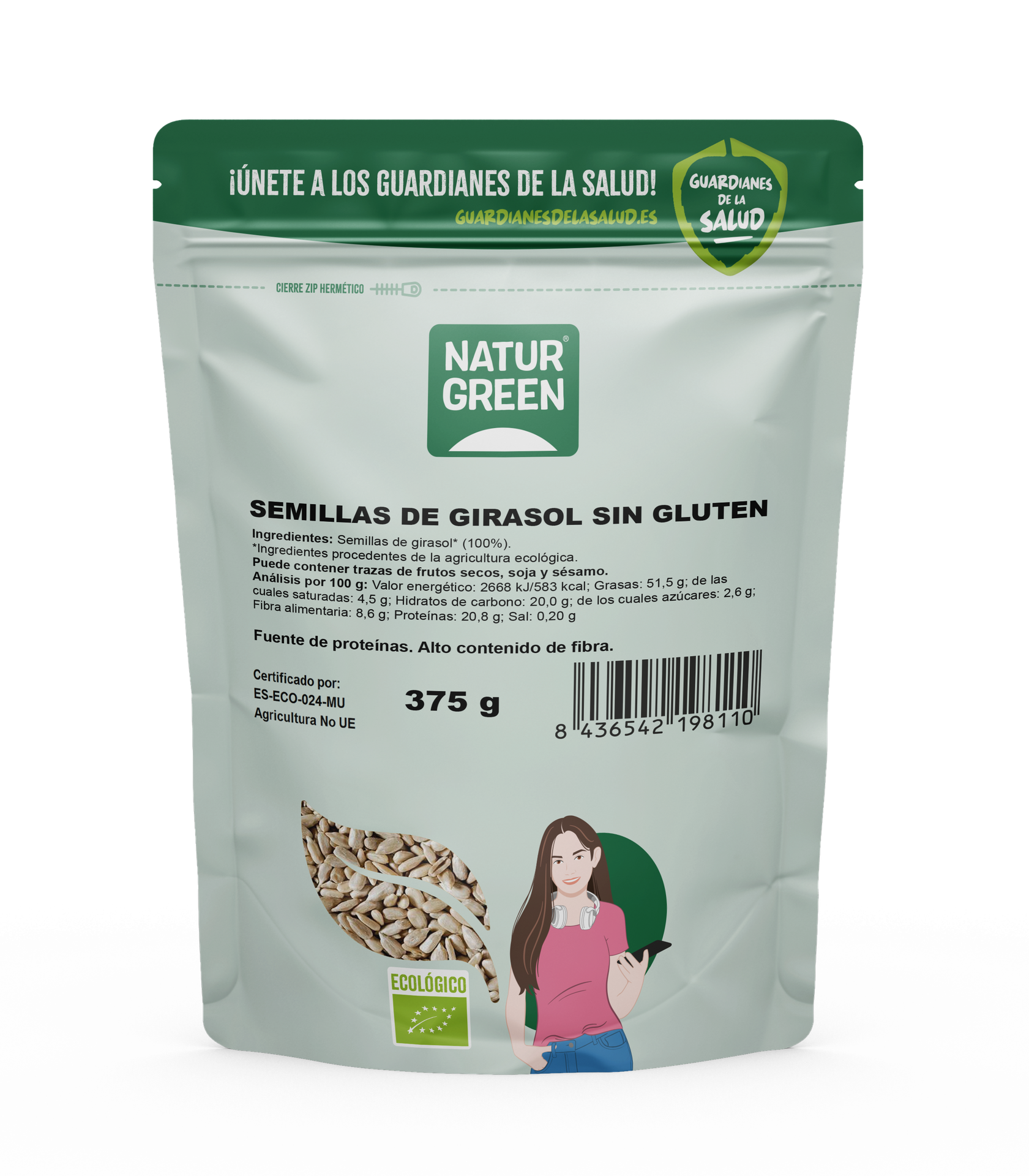 Ingredientes: Sementes de girassol* (100%). *Ingredientes de agricultura biológica. "Este produto é fabricado numa instalação que processa nozes, soja e sésamo."