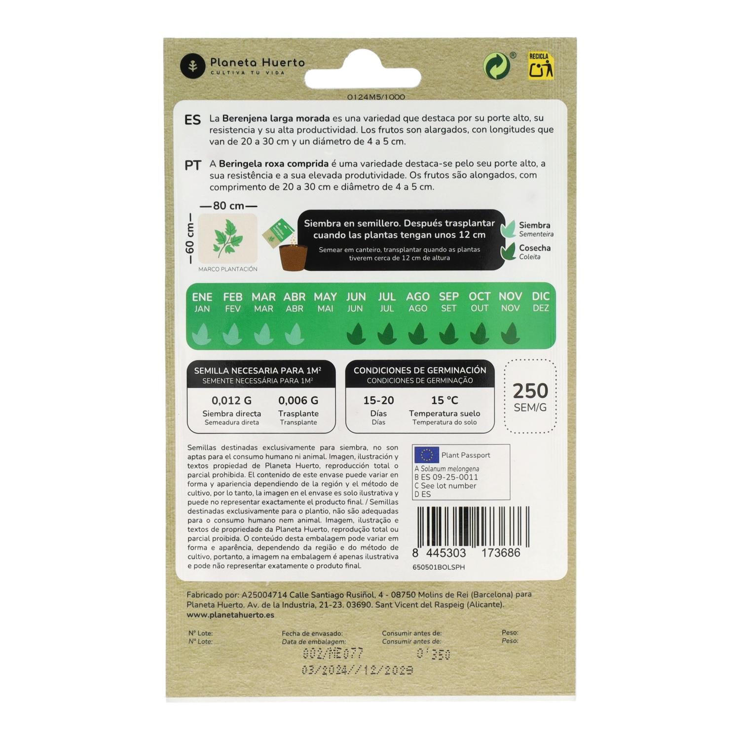 Toda a informação sobre "Sementes orgânicas de beringela roxa longa Planeta Huerto"