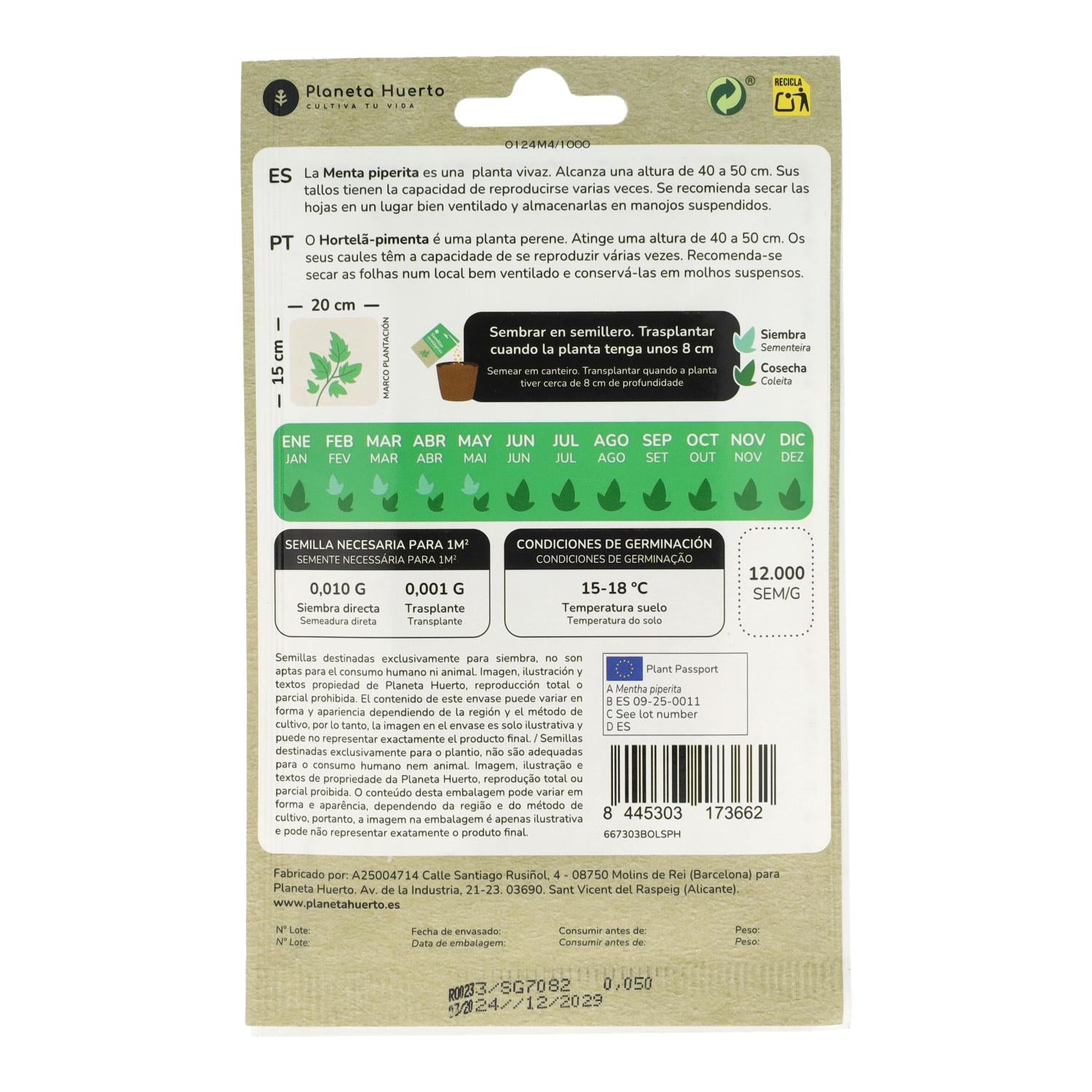 Sementes de hortelã-pimenta biológica da Planeta Huerto