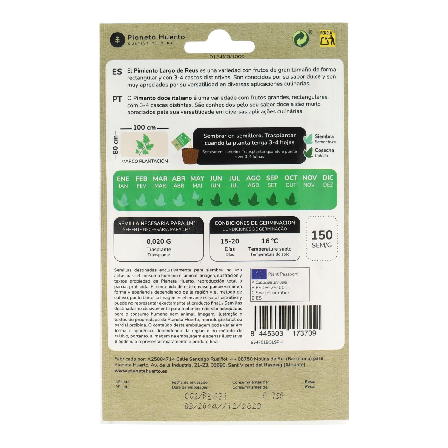 Toda a informação sobre "Sementes de Pimento Longo Biológica Planeta Huerto de Reus"