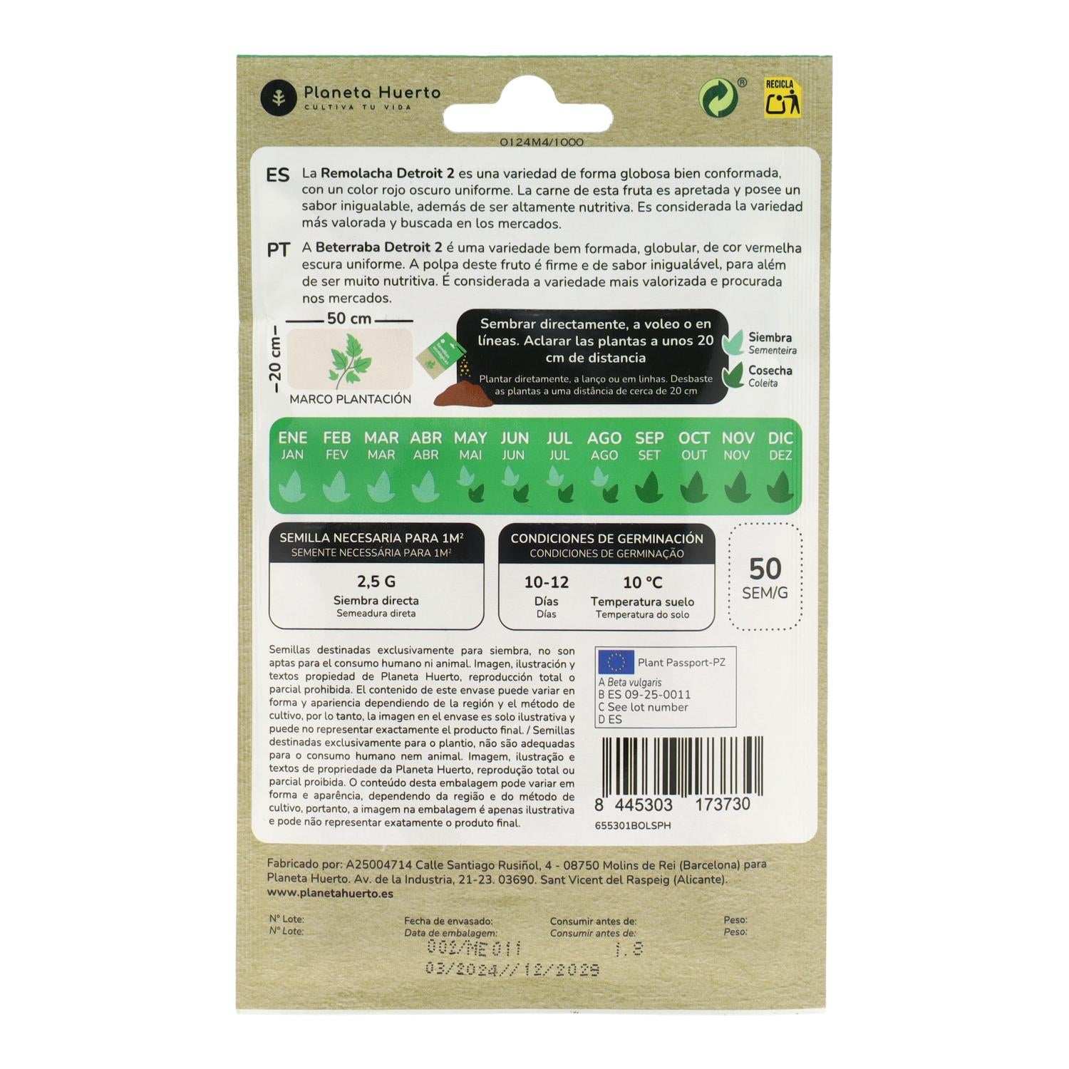 Toda a informação sobre "Sementes de beterraba biológica Detroit 2 da Planeta Huerto"