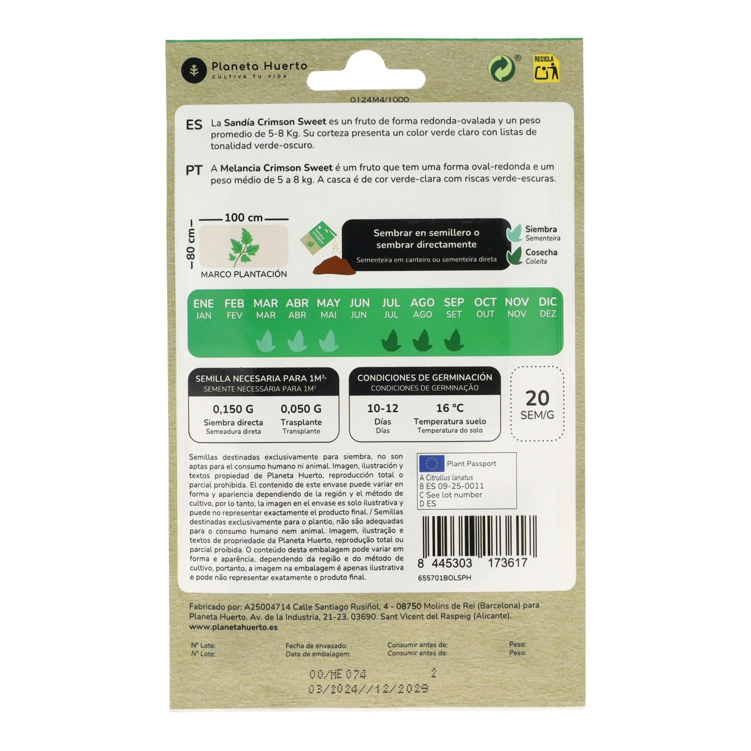 Toda a informação sobre "Sementes de melancia orgânicas Crimson Sweet da Planeta Huerto"