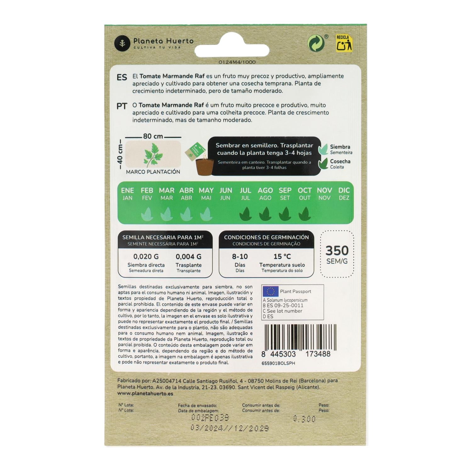 Toda a informação sobre "Sementes de tomate Marmande Raf biológicas Planeta Huerto"