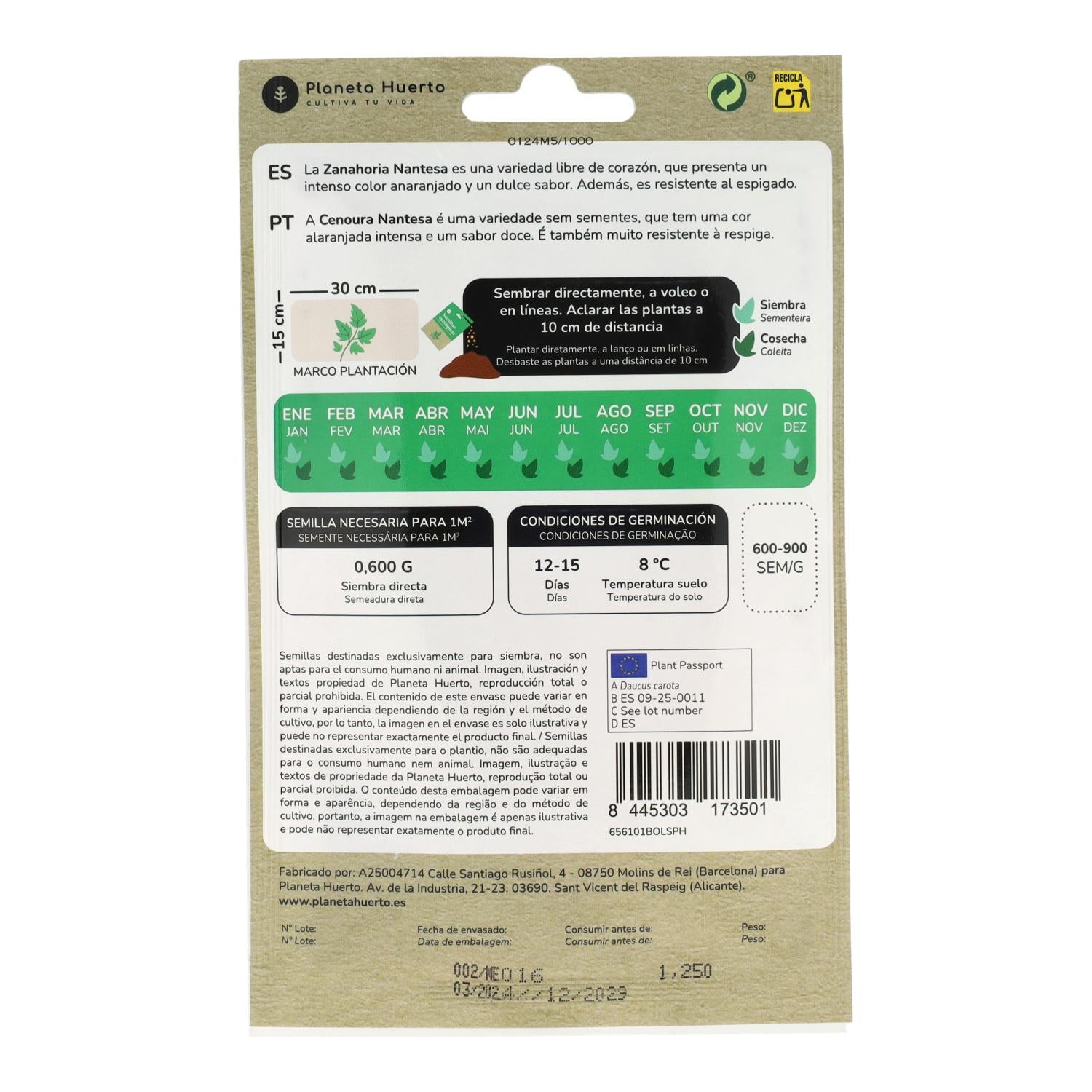Toda a informação sobre "Sementes de cenoura biológicas Nantes da Planeta Huerto"