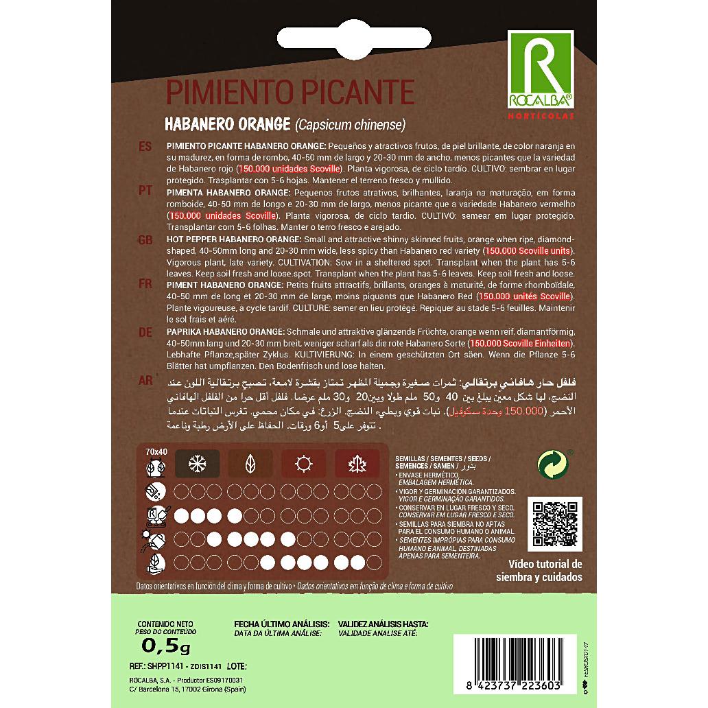 Toda a informação sobre "Sementes de pimento habanero laranja Rocalba"