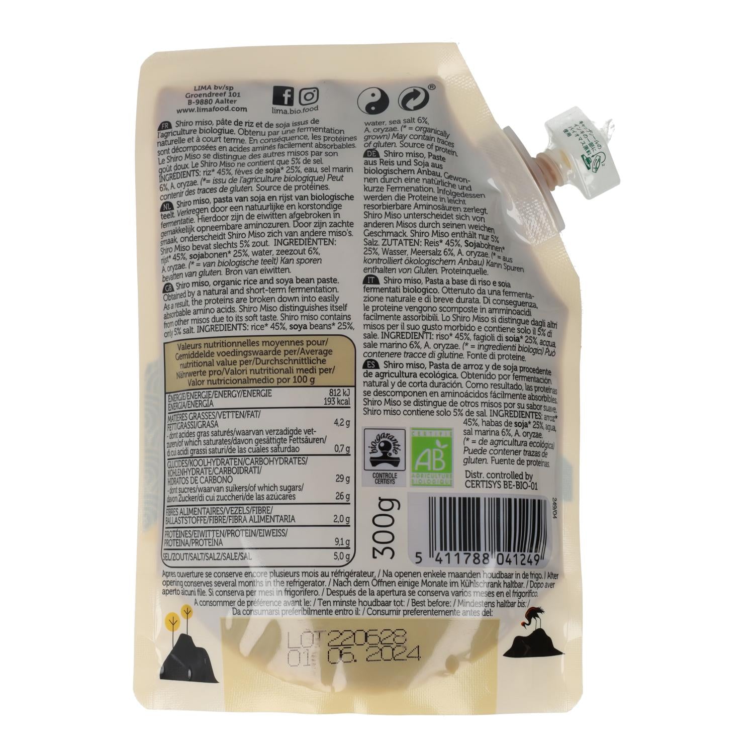 Toda a informação sobre "Shiro Miso biológico Lima ECO 300 gr"
