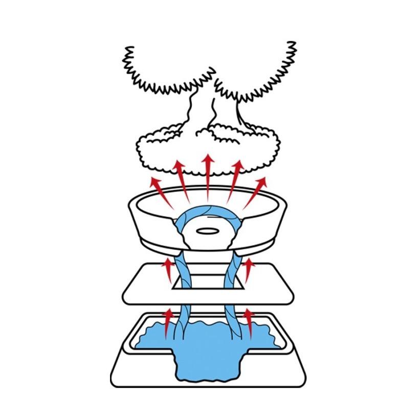 O reservatório de água HIDROBONSAI fornece água lentamente ao bonsai através de um sistema capilar, permitindo que este seja regado apenas uma vez a cada 10 ou 30 dias, dependendo da espécie e do tamanho do vaso.