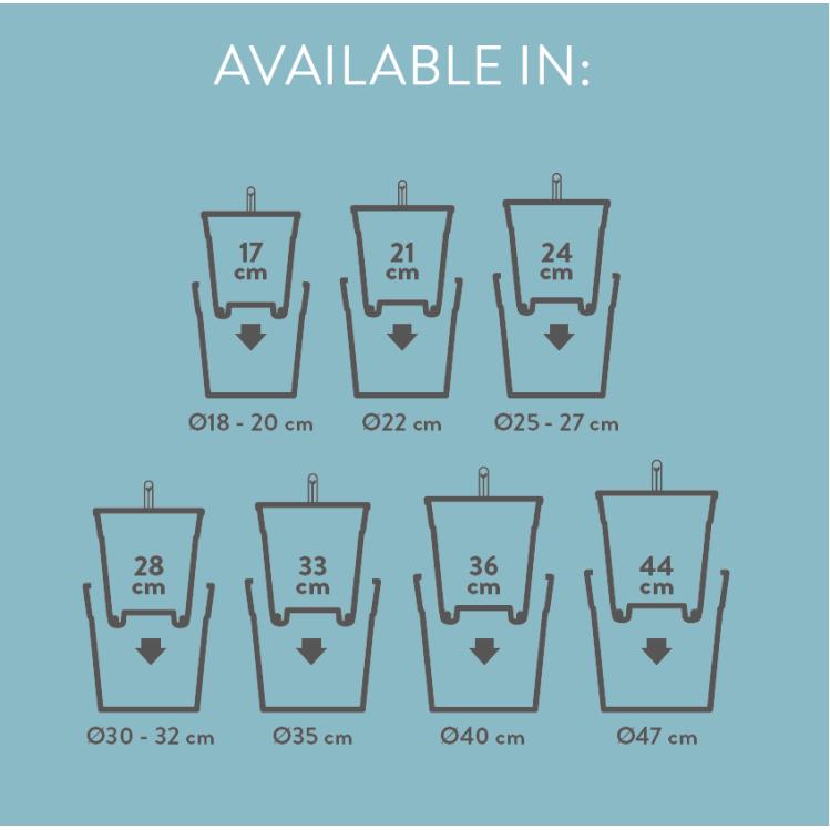 - ⌀ 24 x A 22 cm: Válido para vasos de ⌀ 25 - 27 cm