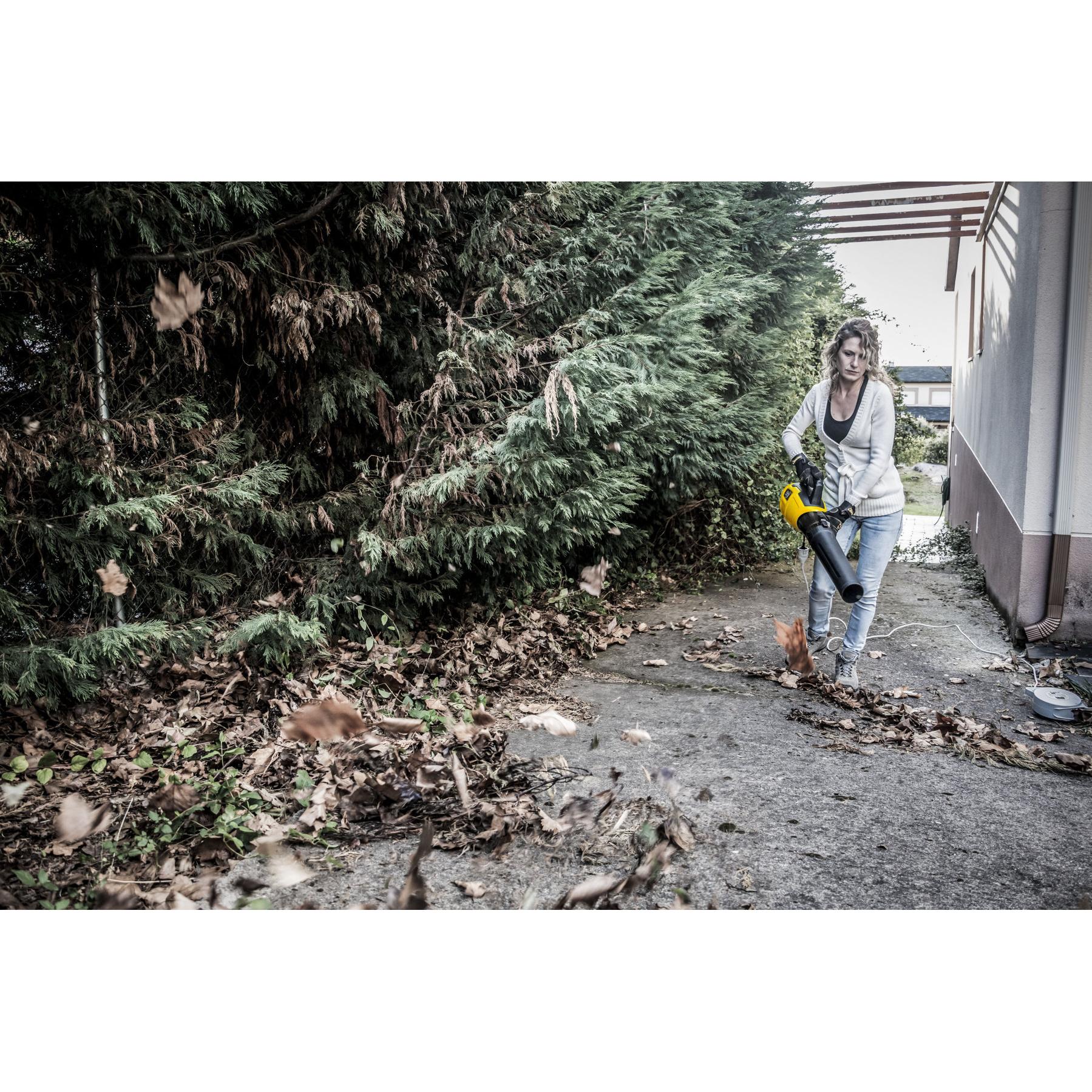 Soprador elétrico leve e eficiente, perfeito para limpar folhas secas, aparas de relva e sujidade leve de jardins, pátios ou decks.