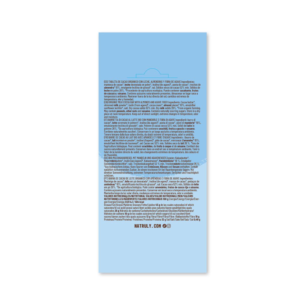 Toda a informação sobre "Barra de chocolate de leite Chocolicious BIO com amêndoas Natruly 85 g"