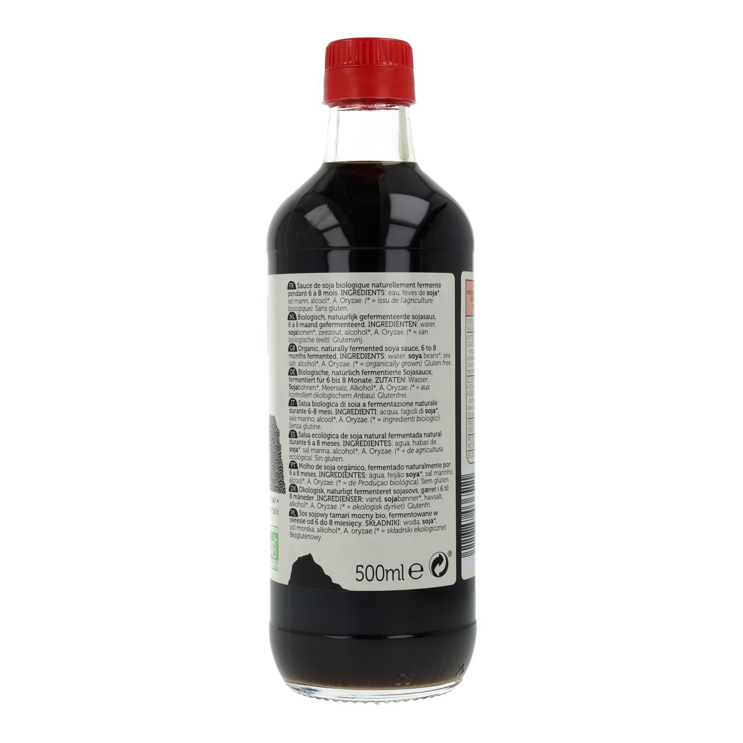 Ingredientes: água, soja*, sal marinho, álcool*, A. Oryzae. *da agricultura biológica