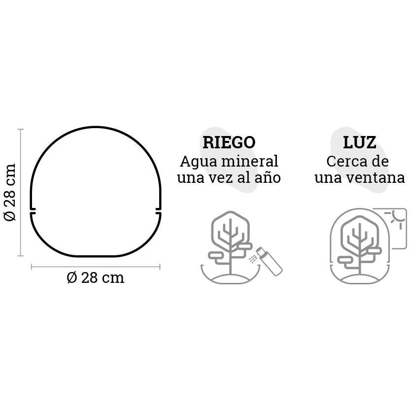 Este terrário contém como planta principal uma palmeira e uma fitónia , bem como outras plantas secundárias, musgo, cascalho, pedras decorativas e um substrato especial. É enviado de forma completa e exclusiva, feito pelos nossos artesãos, juntamente com um guia de cuidados.