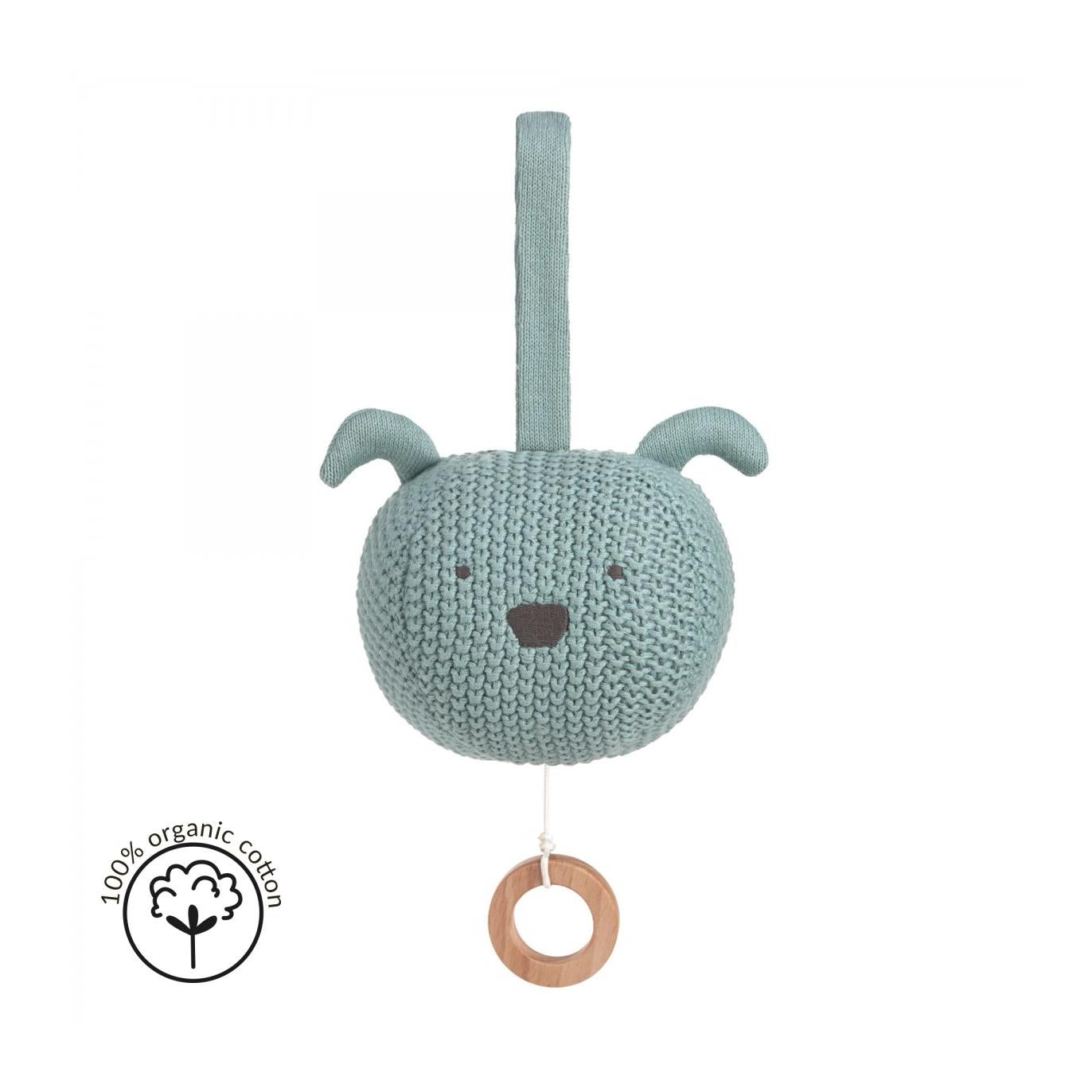 Este brinquedo musical de malha é feito de 100% algodão orgânico com enchimento de poliéster. Está disponível em três designs fofos: cão, gato ou rato. Com o seu mecanismo musical resistente à água, é totalmente lavável à máquina a 30 graus num ciclo delicado.