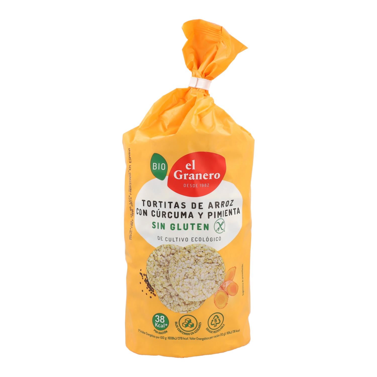 Toda a informação sobre "Bolinhos de arroz biológico sem glúten com curcuma e pimenta da El Granero, 115 g"