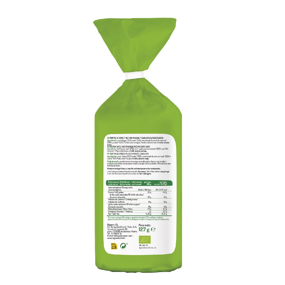 Toda a informação sobre "Bolinhos de arroz e milho com maçã e canela El Granero, 127g"