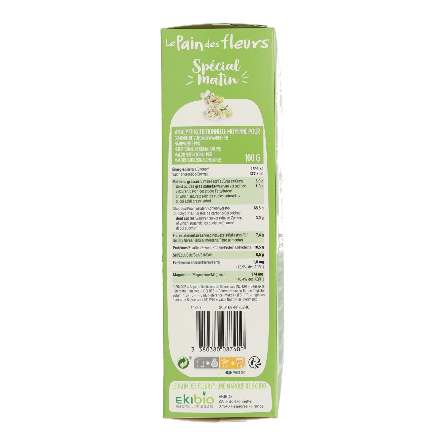 Toda a informação sobre "Tosta biológica de trigo sarraceno, manhãs especiais, Le Pain de Fleurs, 230 g"
