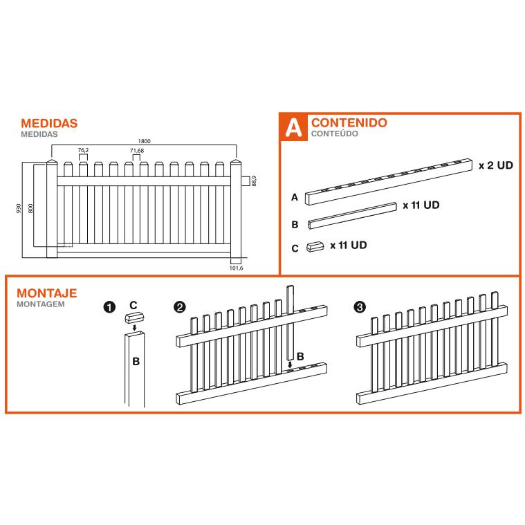 - Medidas da vedação: 1800 comprimento x 800 altura mm
