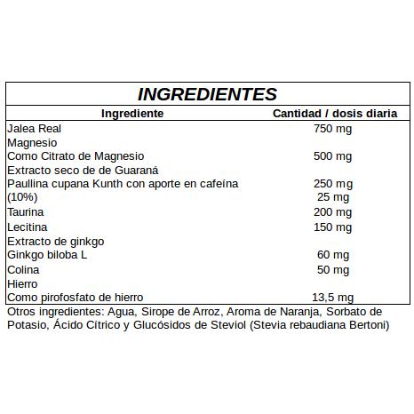 Advertências: Os suplementos alimentares não devem ser utilizados como substitutos de uma dieta equilibrada. Não exceda a dose diária expressamente recomendada. Manter fora do alcance das crianças pequenas. Armazene em local fresco e seco. Contém cafeína (18,75 mg/dose diária); não recomendado a crianças, grávidas ou lactantes. Consulte o seu médico se estiver a tomar este produto simultaneamente com anticoagulantes. Não tome durante a gravidez ou amamentação. Contém soja .